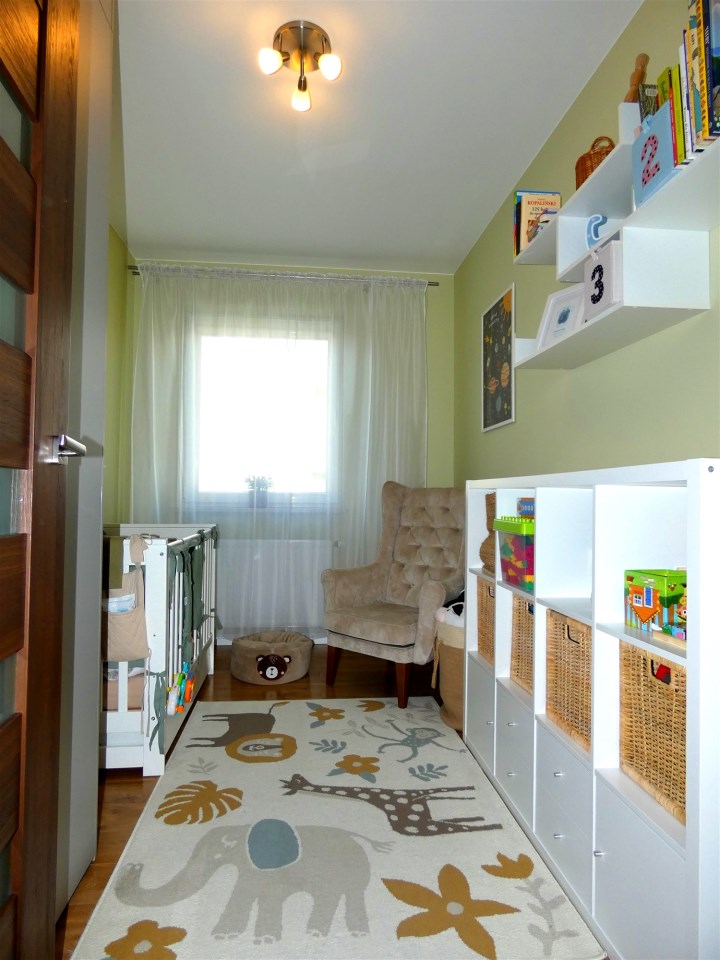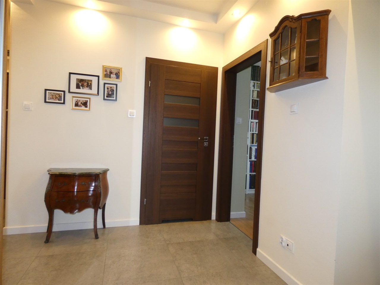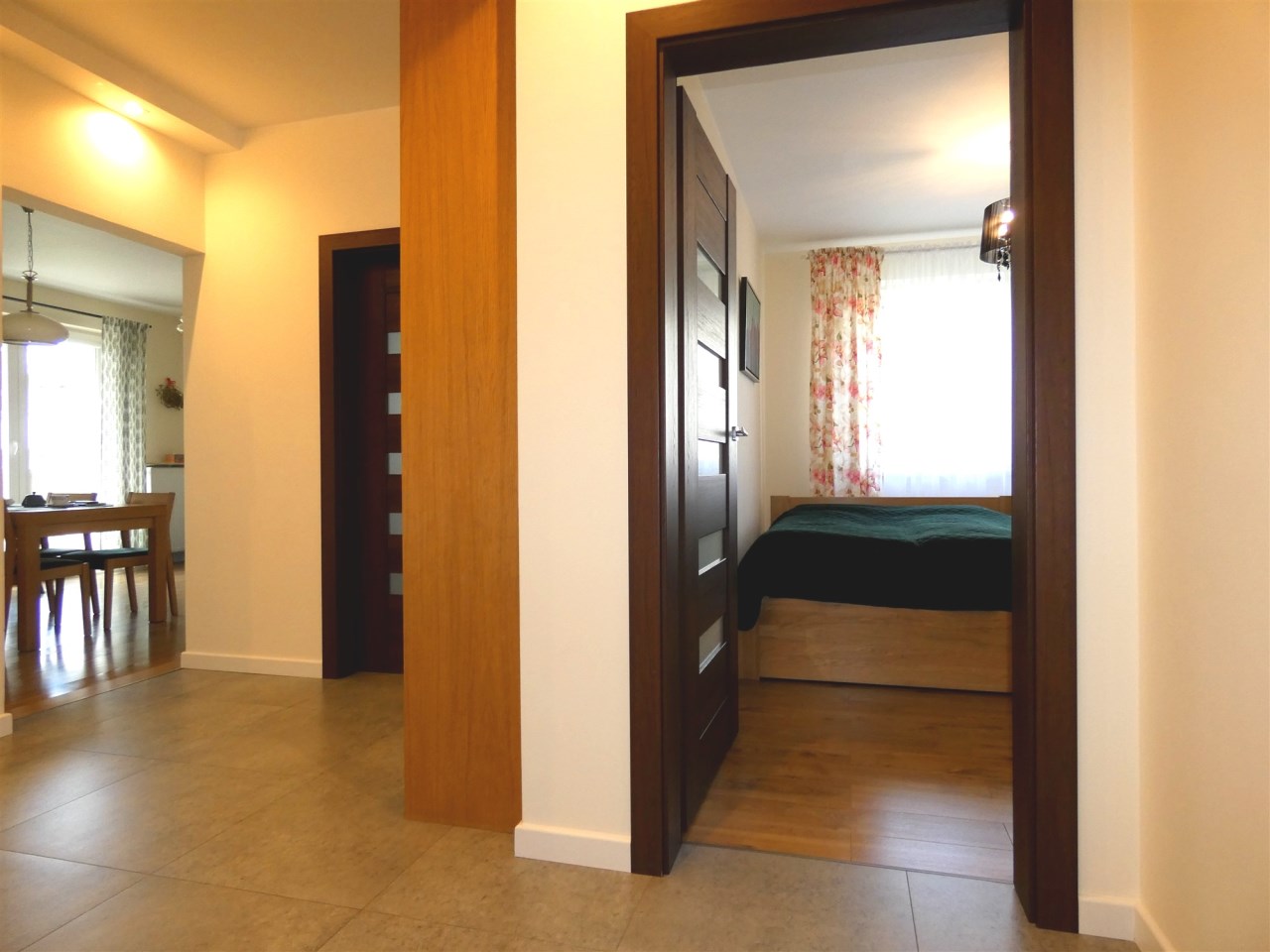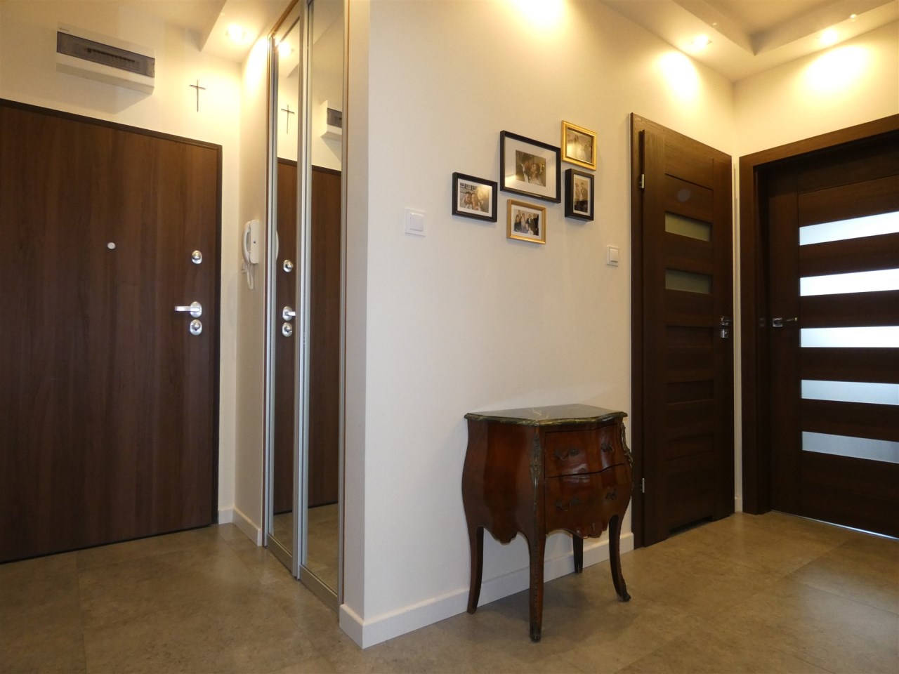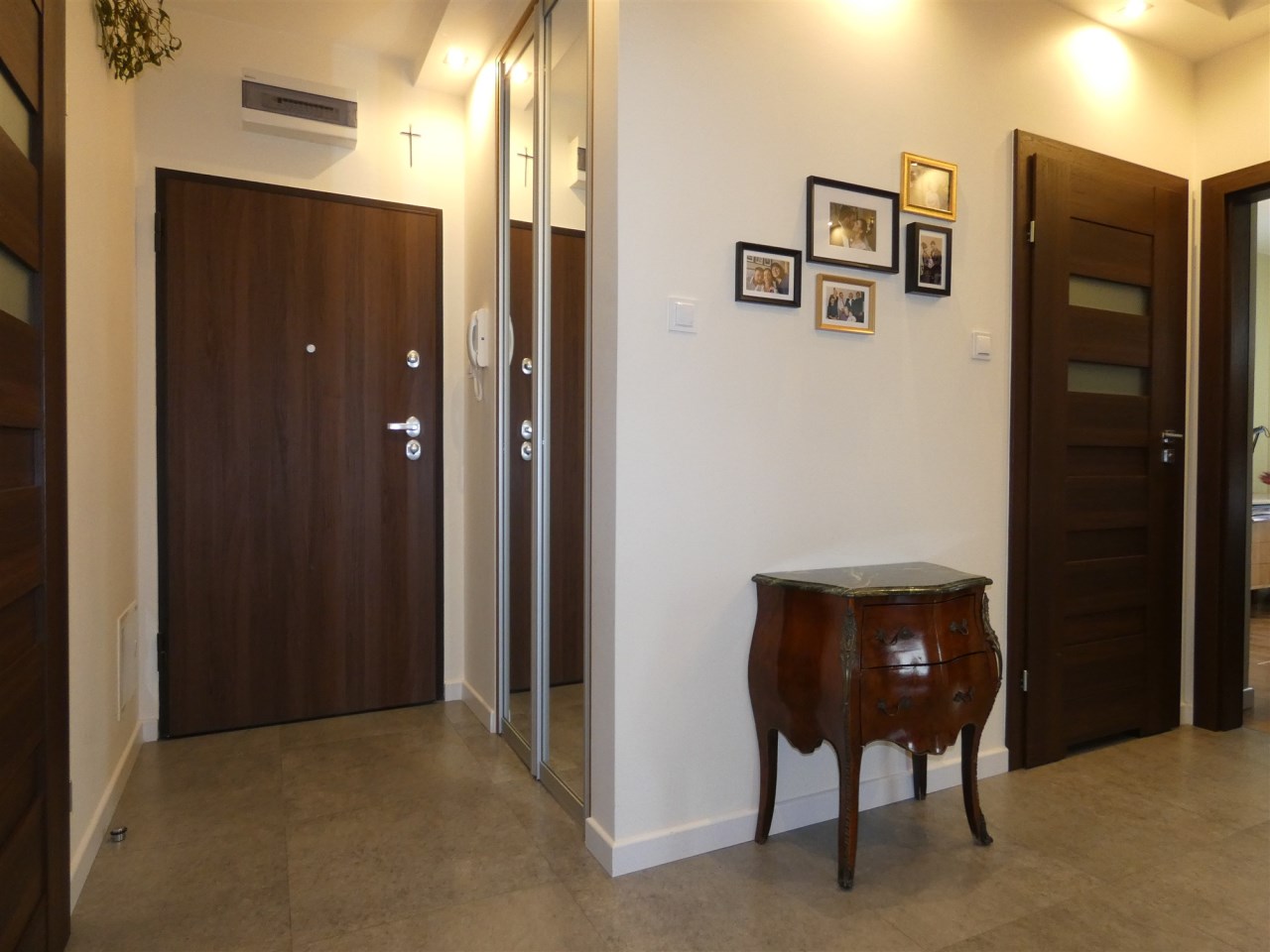 Rozkładowy cichy lokal na ostatniej kondygnacji w kameralnym dwupiętrowym budynku (rok budowy 2018) na zamkniętym, bezpiecznym osiedlu Augustówek na warszawskiej Białołęce. Mieszkanie ustawne i widne, na planie kwadratu. Do wszystkich pomieszczeń wchodzi się z dużego hallu. W skład mieszkania wchodzą 4 pokoje (3 oddzielnie sypialnie), w tym salon z klimatyzacją połączony z kompletnie wyposażonym aneksem kuchennym i wyjściem na duży 7 metrowy balkon. Łazienka z kabiną prysznicową, umywalką i WC. Oddzielne WC, W lokalu jest także garderoba tuż przy antywłamaniowych drzwiach wejściowych do mieszkania. We wszystkich pokojach na podłodze wysokiej jakości panele podłogowe, w hallu, łazience i WC podłoga wyłożona gresem. Lokal w bardzo dobrym stanie, gustownie wykończony w wysokim standardzie, gotowy do wprowadzenia. Wysokość stropów wynosi 2,7m. Na całej szerokości zadaszonego balkonu zamontowano składaną markizę skutecznie osłaniającą od bezpośredniego promieniowania słońca w upalne dni latem. Istnieje możliwość zakupu miejsca postojowego w garażu podziemnym wraz z komórką lokatorską typu boks, położoną bezpośrednio za stanowiskiem postojowym. Osiedle zielone, zadbane z własną kotłownią gazową (niższe koszty eksploatacji), nowe dwupiętrowe budynki, zamieszkane przez młodych i kulturalnych mieszkańców.