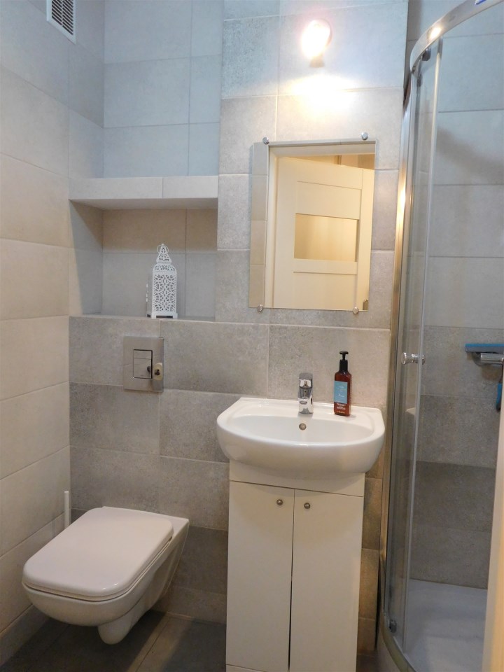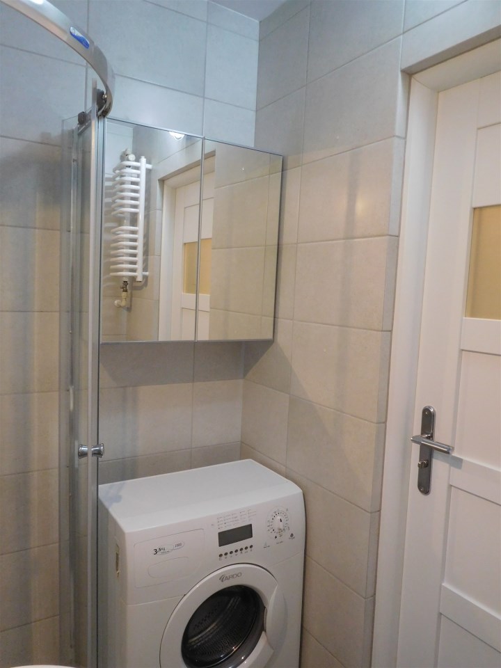 | Wyposażenie łazienki | kabina prysznicowa, lustro, pralka, umywalka, WC |