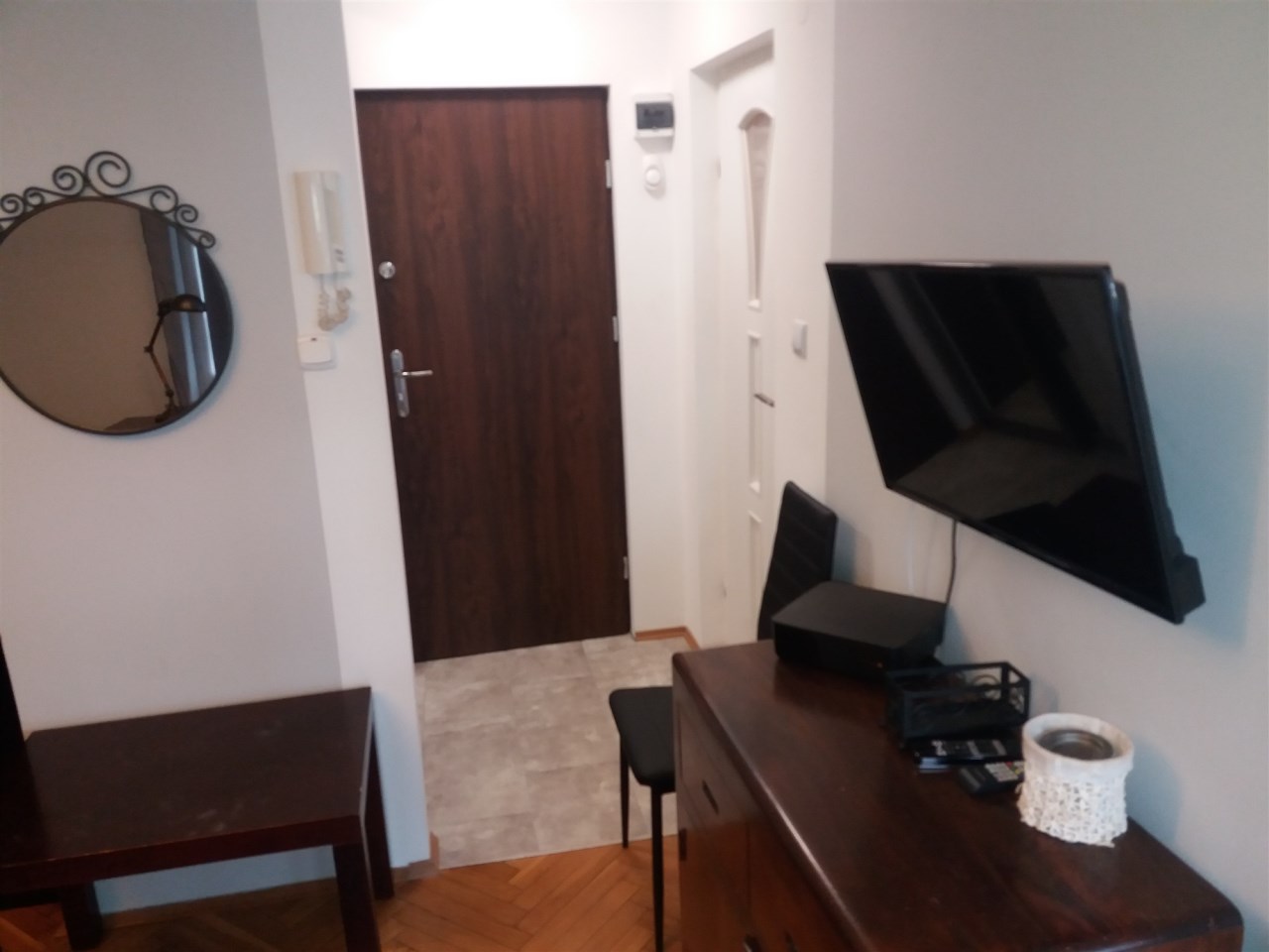 Do sprzedania widne, funkcjonalne jednopokojowe mieszkanie w ścisłym centrum Warszawy przy ul. Pańskiej 55. Mieszkanie po remoncie kilka lat temu, wyposażone w meble i sprzęty agd. W przedpokoju znajduje się pojemna wnękowa szafa ubraniowa. Prawie 20-metrowy pokój został podzielony na strefę wypoczynku z sofą z funkcją spania oraz strefę do pracy z biurkiem w stylu kolonialnym i fotelem biurowym z jasnej skóry. W kuchni znajdziemy zabudowę z kącikiem jadalnym, nową lodówkę i kuchenkę gazową. W łazience z WC jest kabina natryskowa i pralka automatyczna. W pobliżu węzeł komunikacji miejskiej (metro, tramwaje, autobusy) i międzymiastowej (dworzec Centralny PKP).