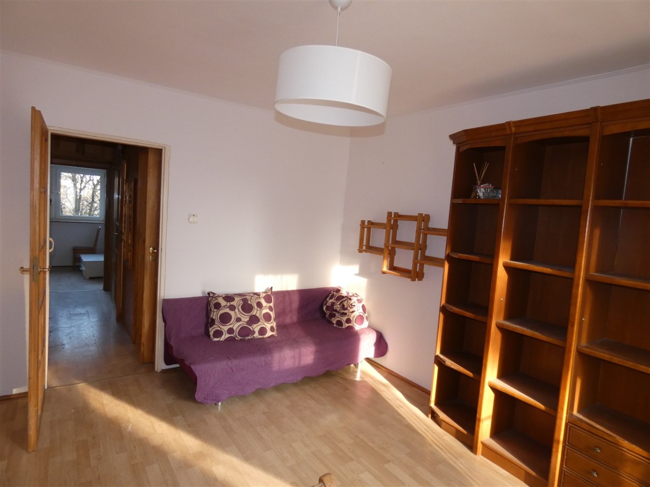 Do wynajęcia dwustronne rozkładowe, dwupokojowe mieszkanie na Rakowcu przy ul. Grzeszczyka 6. Lokal składa się z dużego pokoju 15m2 , z którego jest wyjście na balkon typu ambona i wejście do mniejszego pokoju 6 m2 przerobionego na garderobę, sypialni 11 m2, oddzielnej widnej kuchni 6 m2, łazienki 2,6 m2 z kabiną prysznicową i pralką, oddzielnego WC 1,1 m2 oraz przedpokoju 7 m2 z szafą ubraniową. Na podłogach w pokojach i przedpokoju panele podłogowe, w kuchni, łazience i WC terakota. Wysokość pomieszczeń 2,5m. Do mieszkania przynależy piwnica na poziomie (-1). Dwa mieszkania na każdym piętrze, razem 10 mieszkań na klatce schodowej. Miejsce parkingowe przed budynkiem na ogólnodostępnym parkingu. Dobre skomunikowanie z centrum. Kilka minut marszu do ul. Grójeckiej (tramwaje, autobusy). Do czynszu najmu należy doliczyć opłaty ekspoatacyjne - woda, centralne ogrzewanie, śmieci, gaz, prąd. W zależności od zużycia mediów opłaty eksploatacyjne wynoszą 700 zł +/- 100zł. Polecamy!