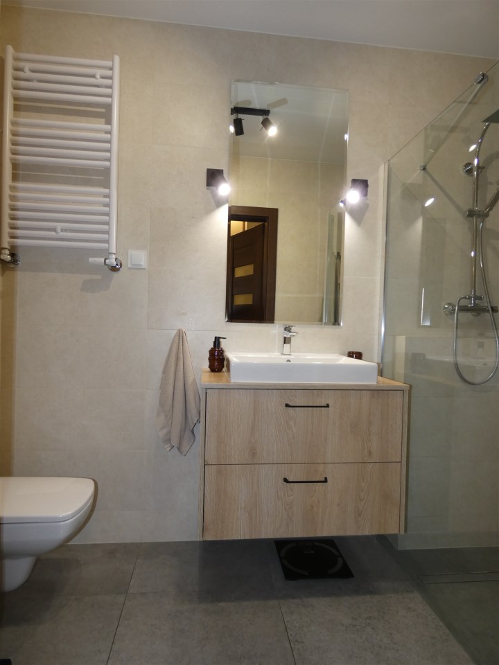 | Wyposażenie łazienki | kabina prysznicowa, lustro, umywalka |